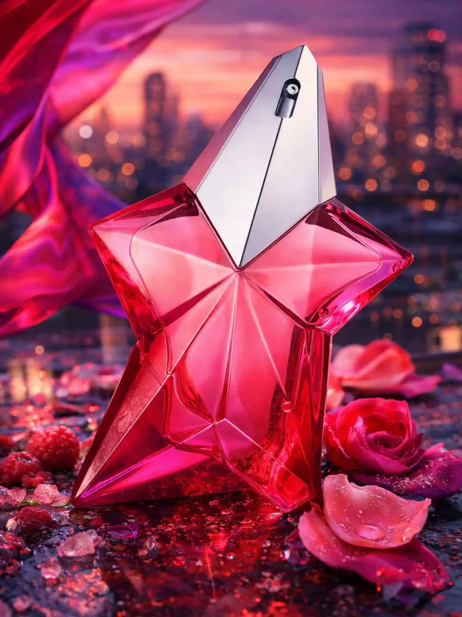 Mugler Angel Nova to zapach, który nie prosi o pozwolenie – on wkracza na scenę z siłą kosmicznego wybuchu, malując rzeczywistość w odcieniach neonowego różu. To kompozycja, w której legendarna gwiazda Muglera zrzuca ciężką, czekoladowo-paczulową szatę pierwowzoru, by narodzić się na nowo jako owocowo-kwiatowa supernowa, tętniąca życiem i nowoczesnością. Stworzona dla współczesnych heroin, które zamieniają marzenia w plany, a ich energia jest równie zaraźliwa, co uzależniająca. Otwarcie to soczysty wstrząs: słodka, dojrzała Malina splata się z egzotycznym, wodnistym Liczi, tworząc wibrujący, niemal jadalny wstęp, który działa jak natychmiastowy zastrzyk dopaminy i radości.