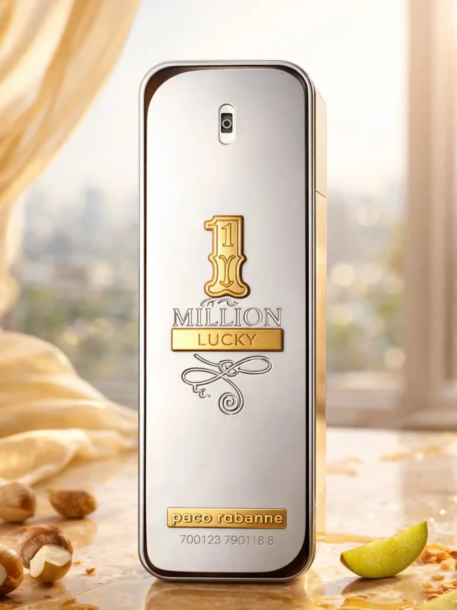 1 Million Lucky marki Rabanne to drzewna kompozycja dla mężczyzn, która zadebiutowała w 2018 roku, wprowadzając do ikonicznej linii powiew świeżości i nowoczesnego, gourmandowego charakteru. Za tą genialną, uzależniającą formułą stoi wybitna kreatorka – Natalie Gracia-Cetto. Jej wizja polegała na stworzeniu zapachu, który byłby lżejszy i bardziej radosny niż klasyczny protoplasta, ale zachowywał jego niepodrabialną siłę rażenia i trwałość. Flakon, o niezmiennym kształcie sztabki, tym razem zyskał srebrno-platynowe wykończenie ze złotymi detalami, co idealnie wizualizuje charakter zawartości: jest to zapach chłodny na powierzchni, ale nasycony "płynnym złotem" w środku. W świecie zapachów edycja Lucky wyróżnia się niespotykanym połączeniem nut orzechowych i ozonowych, co nadaje jej unikalnego, uniwersalnego sznytu, pasującego na każdą okazję.